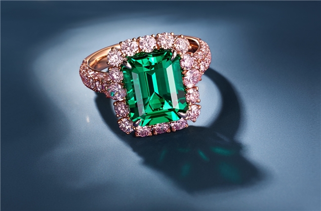 –   更难得的是,祖母绿的浓郁翠绿与粉钻的鲜活粉红形成独特视觉美学,让「Diana」成为高端收藏市场中 “金字塔尖” 的稀缺单品。